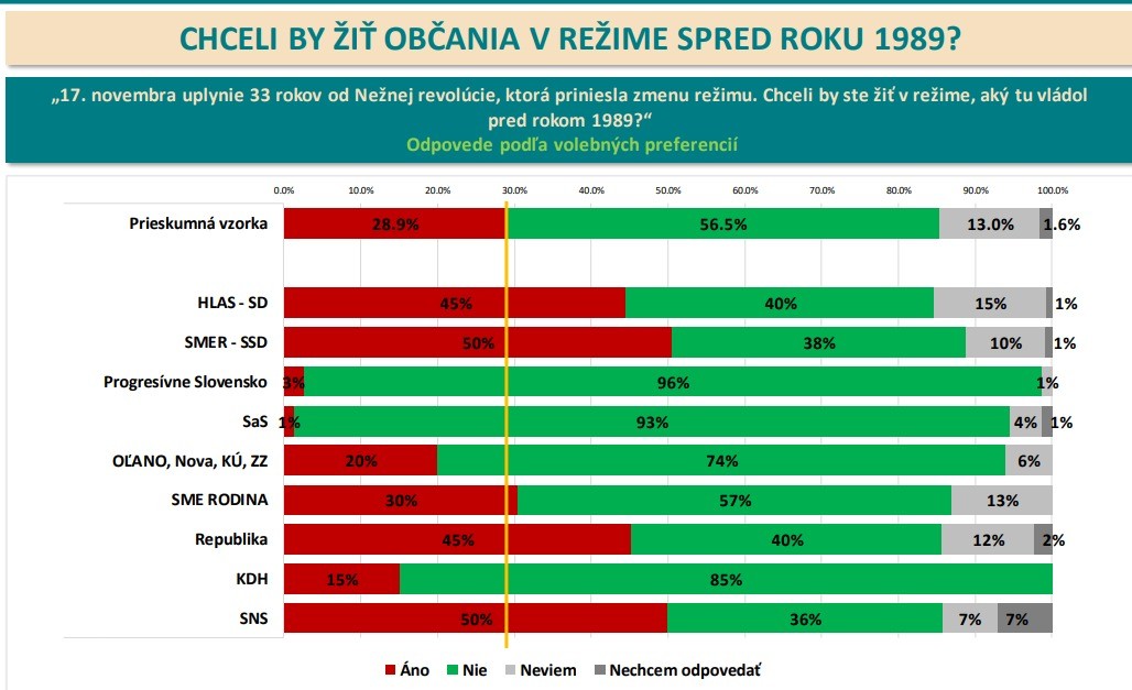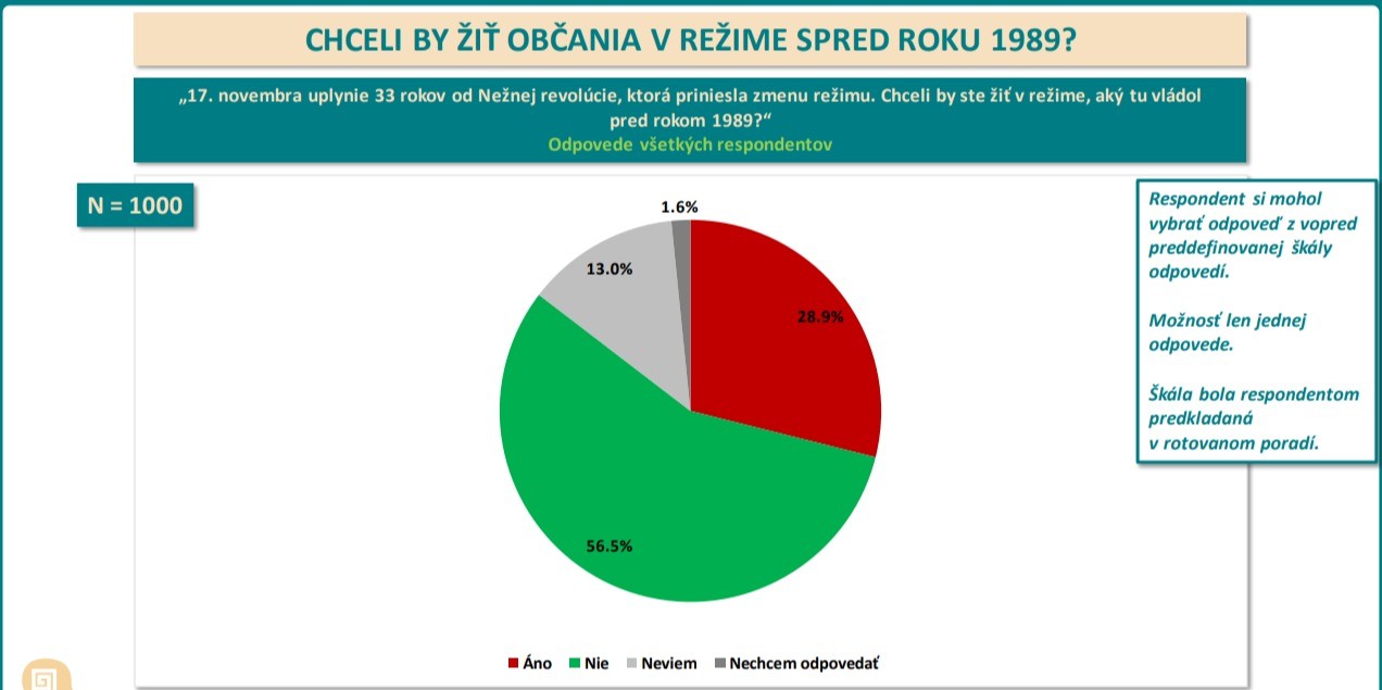 - 28,9% opýtaných by chcelo žiť v režime spred roku 1989.