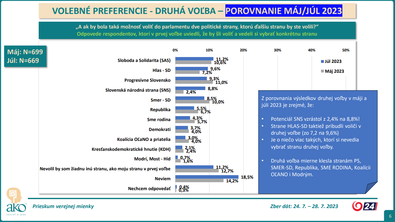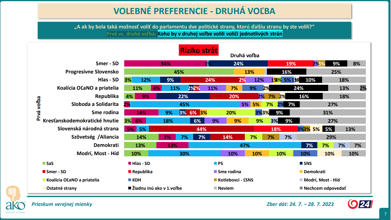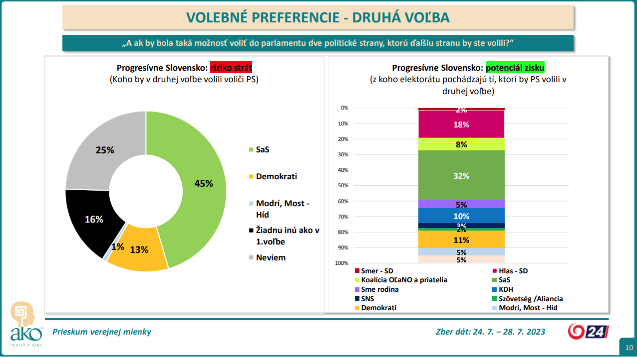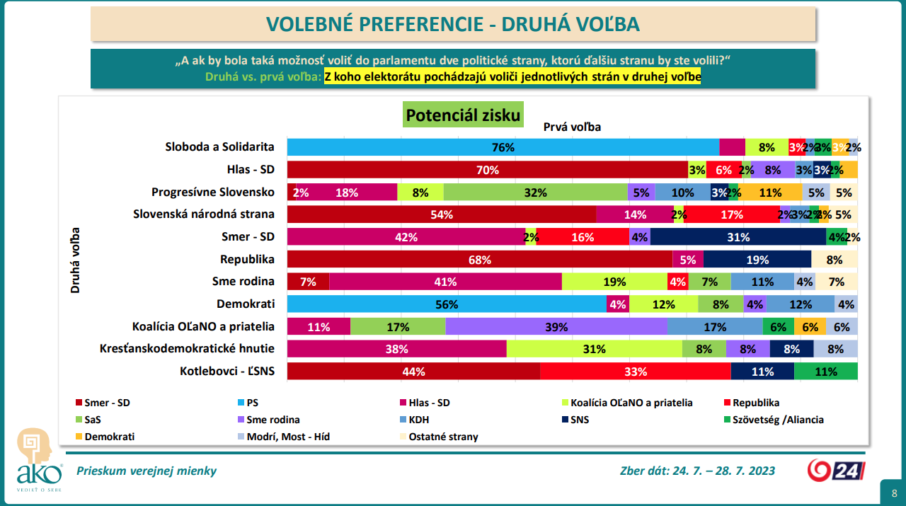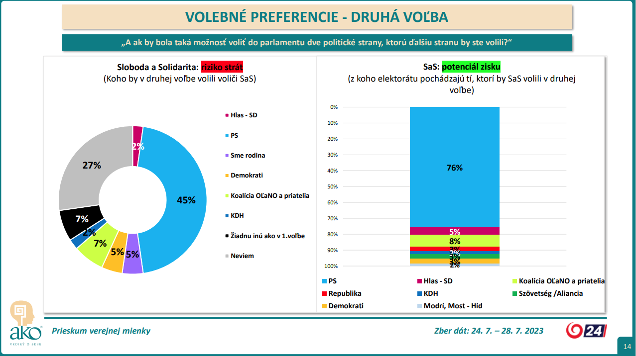 SaS by mohla získať najmä voličov PS (3 zo 4 z tých, čo dali SaS ako svoju druhú voľbu sú voliči PS), 8 % sú voliči Koalície OĽANO a 5 % voliči HLAS-SD.