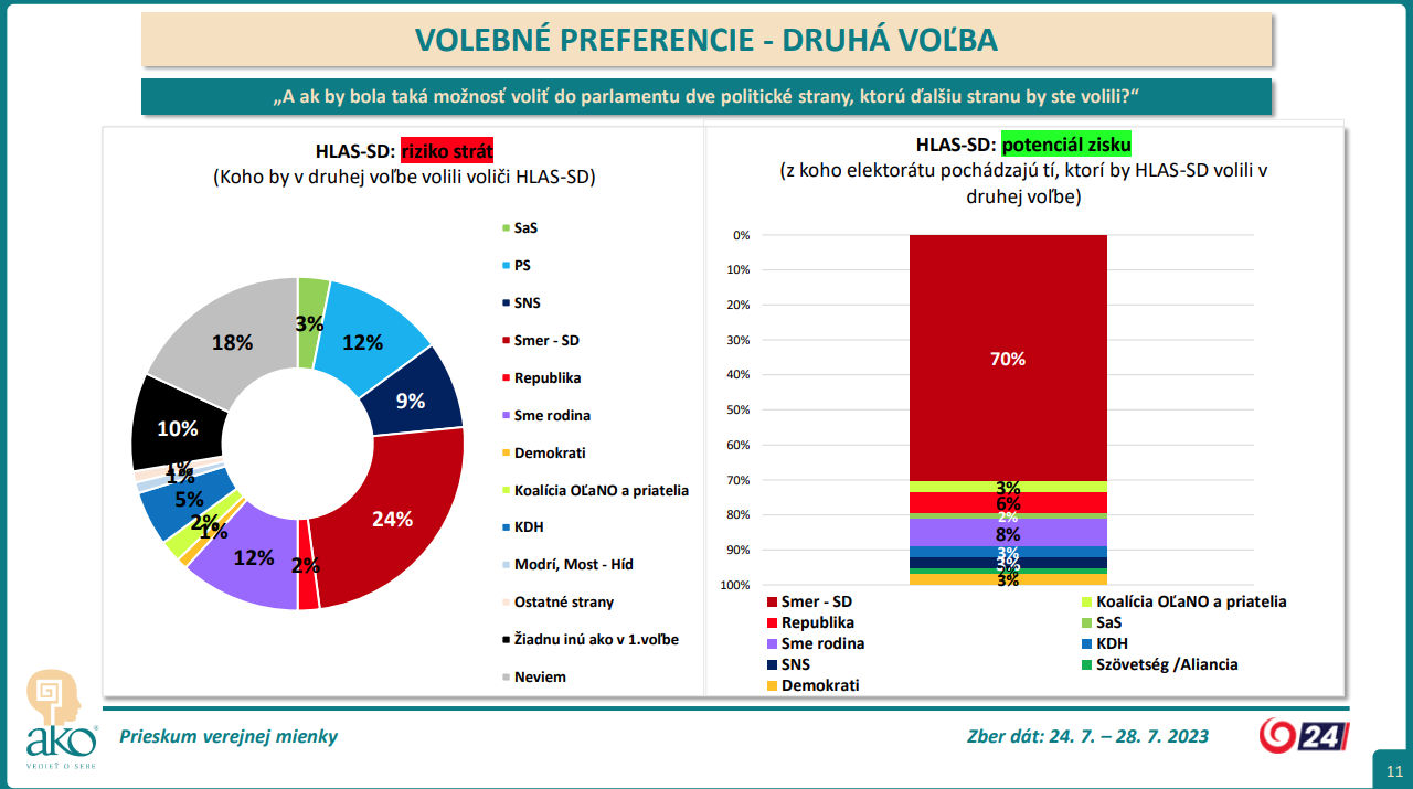 HLAS by mohol získať najmä voličov SMERU (až 7 z 10 tých, čo dali HLAS ako svoju druhú voľbu sú voliči SMERu), potom už výrazne menej od SME RODINA a Republika.